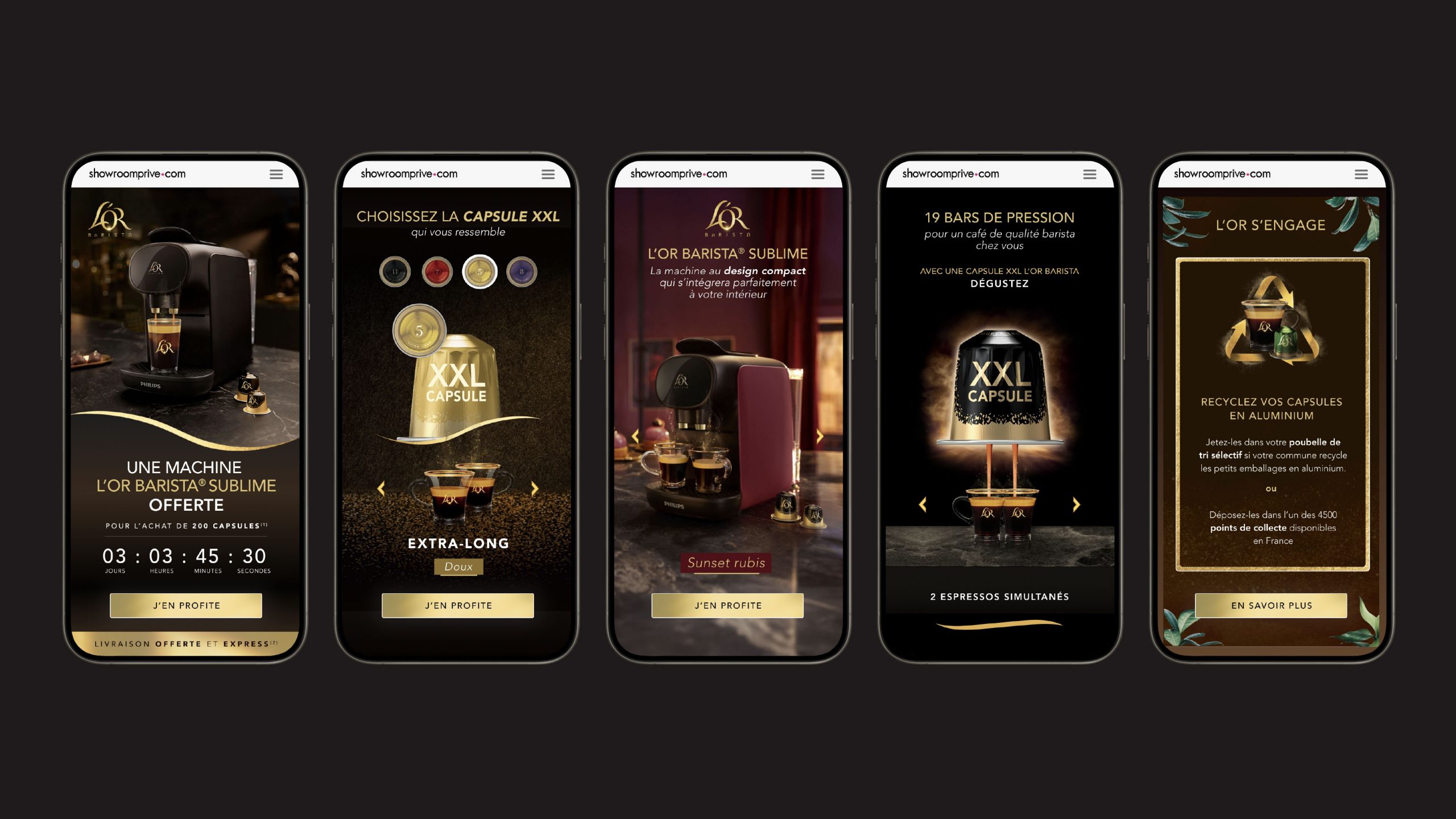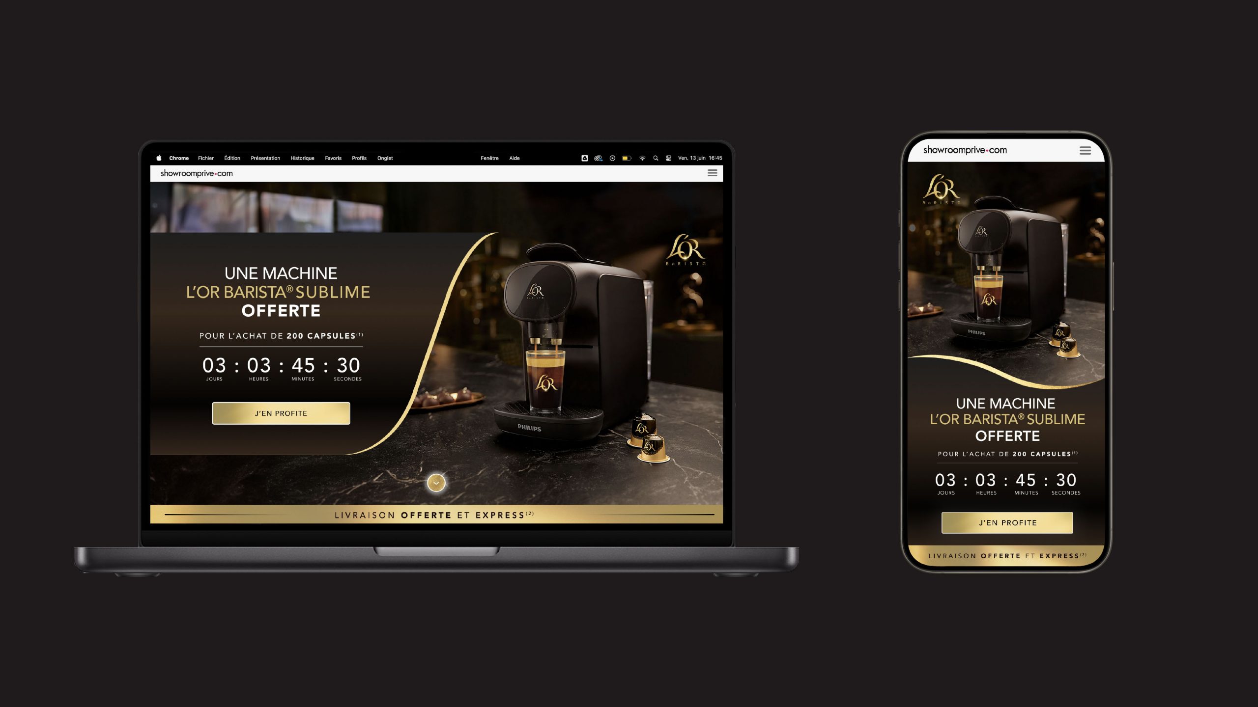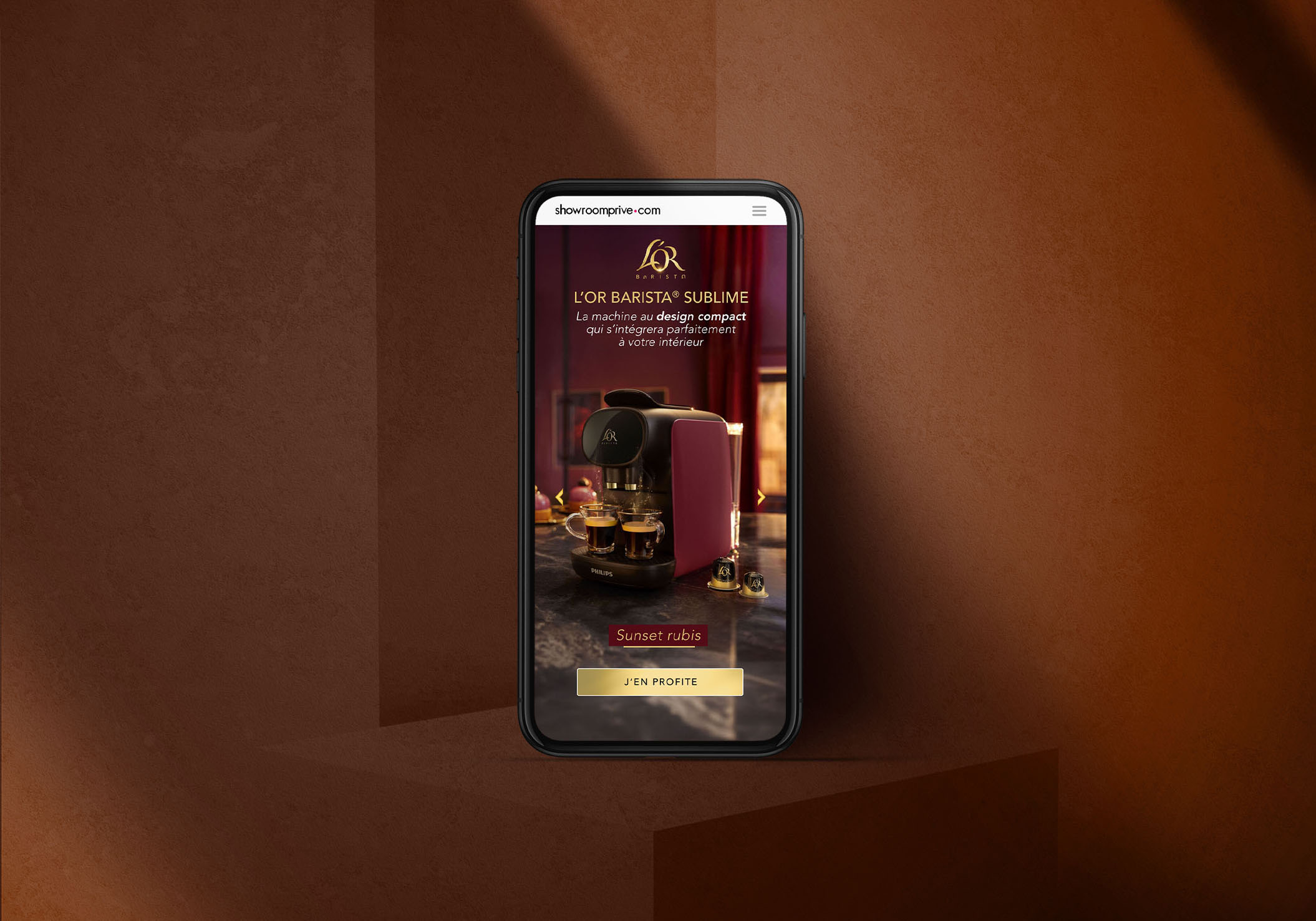 Réalisation d’une campagne promotionnelle pour la machine à café L’OR Barista Sublime, en collaboration avec Showroomprivé.