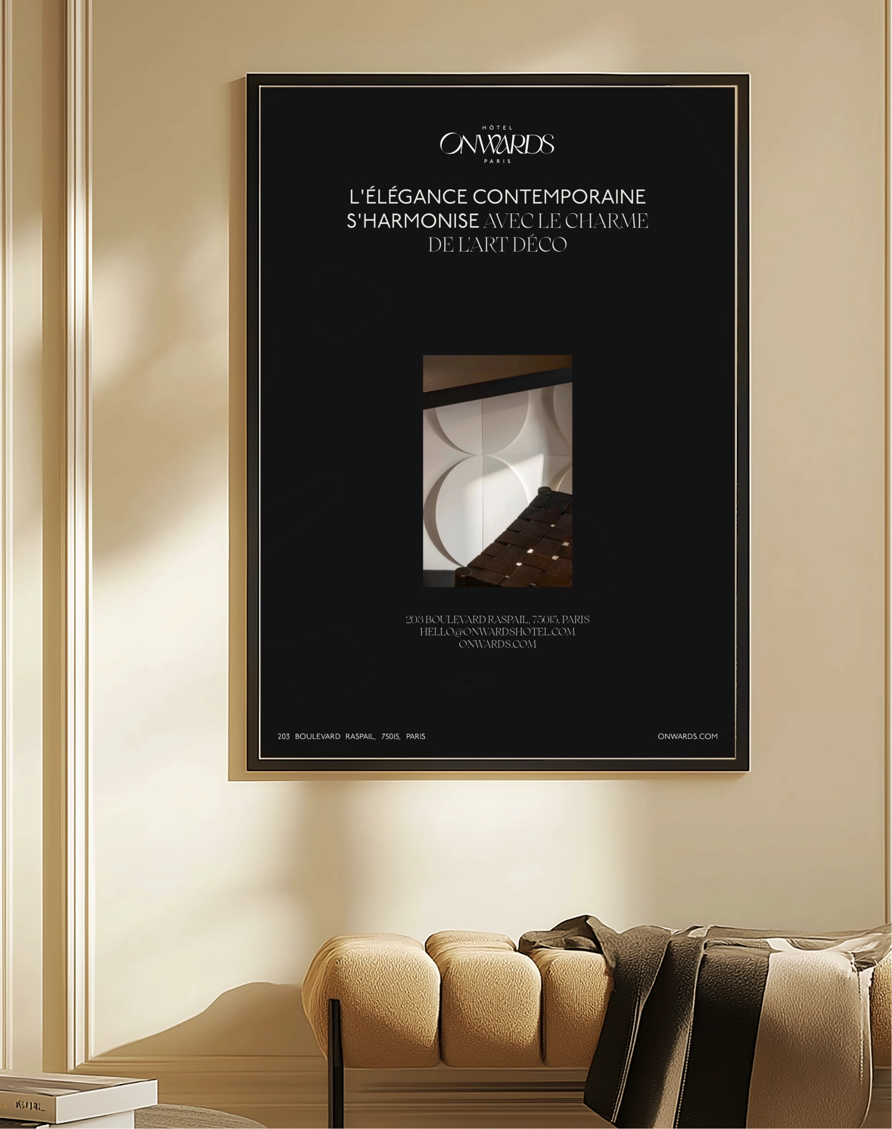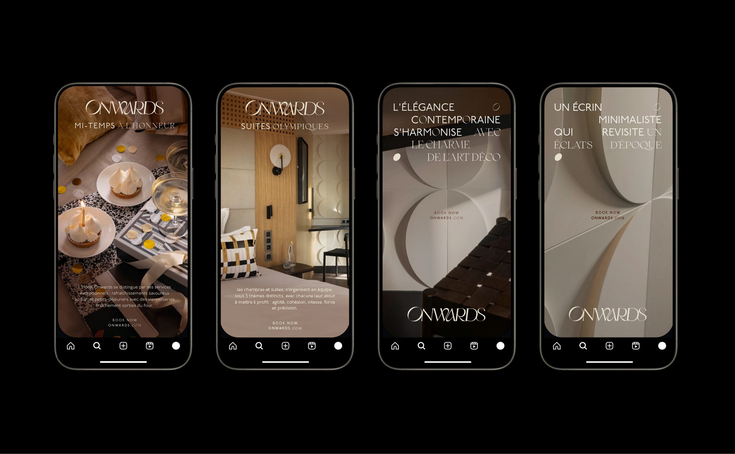 Hôtel Onwards Hôtelier des premiers J.O L’hôtel Onwards revisite les disciplines emblématiques des premiers J.O. à travers un décor inspiré des années 30. L’esthétique, avec ses lignes dynamiques, évoque le mouvement et l’élan vers l’avant, symbolisant la quête sportive du dépassement. BRANDING CLIENT Hôtel en ville PERIODE 2024 TYPE Branding Projets LA MAISON ARCHE 360 DESIGN 00-1 DÉCOUVRIR VILLAGE BRANDING DESIGN 00-2 DÉCOUVRIR