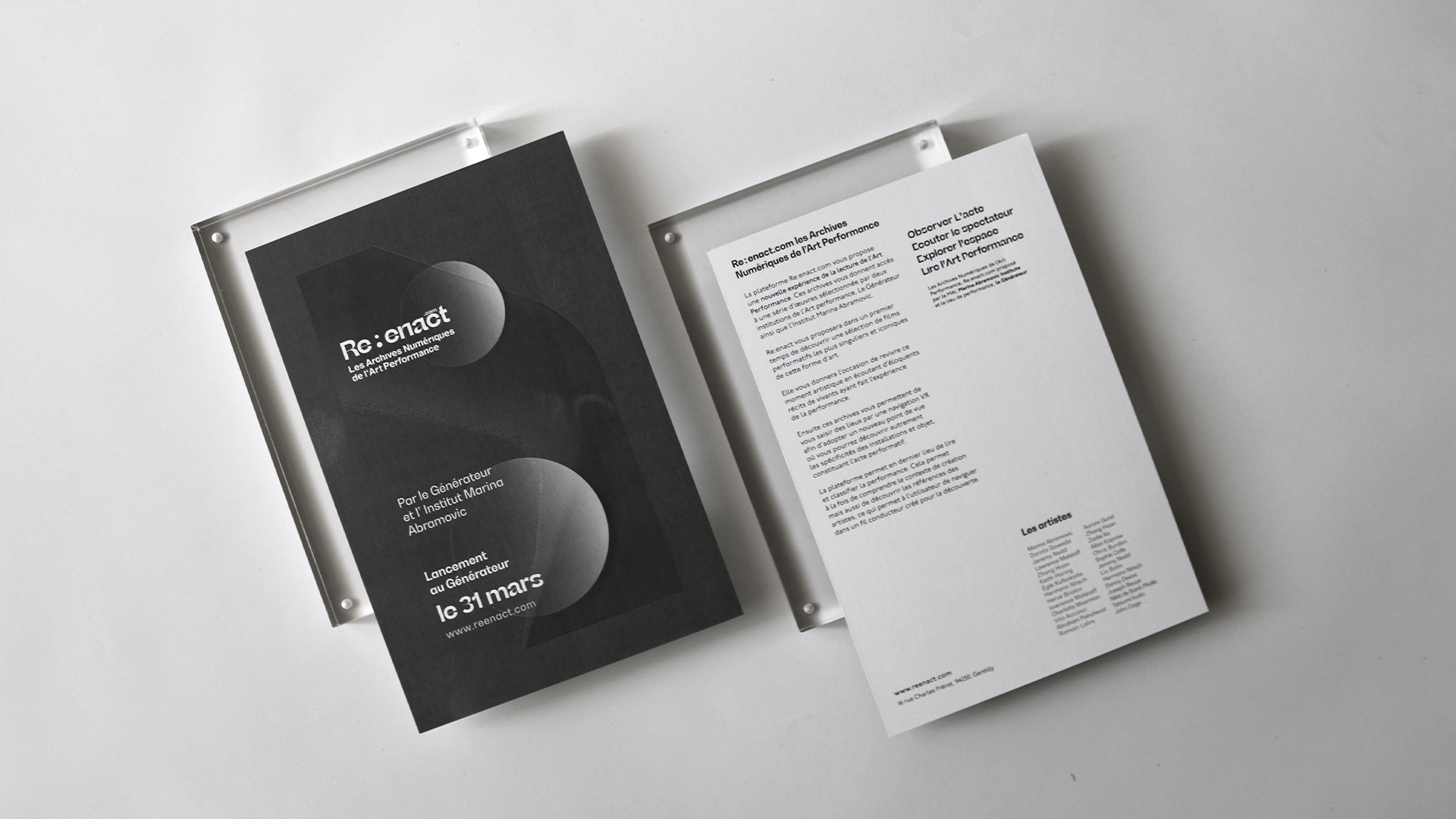 Re:enact est une plateforme dédiée à l’art de la performance, qui propose une nouvelle manière de l’explorer, de l’initier et de l’analyser. Destinée aux artistes, professionnels, étudiants et curieux, elle prend la forme d’une base de données offrant plusieurs grilles de lecture pour mieux comprendre et revisiter la performance.